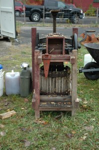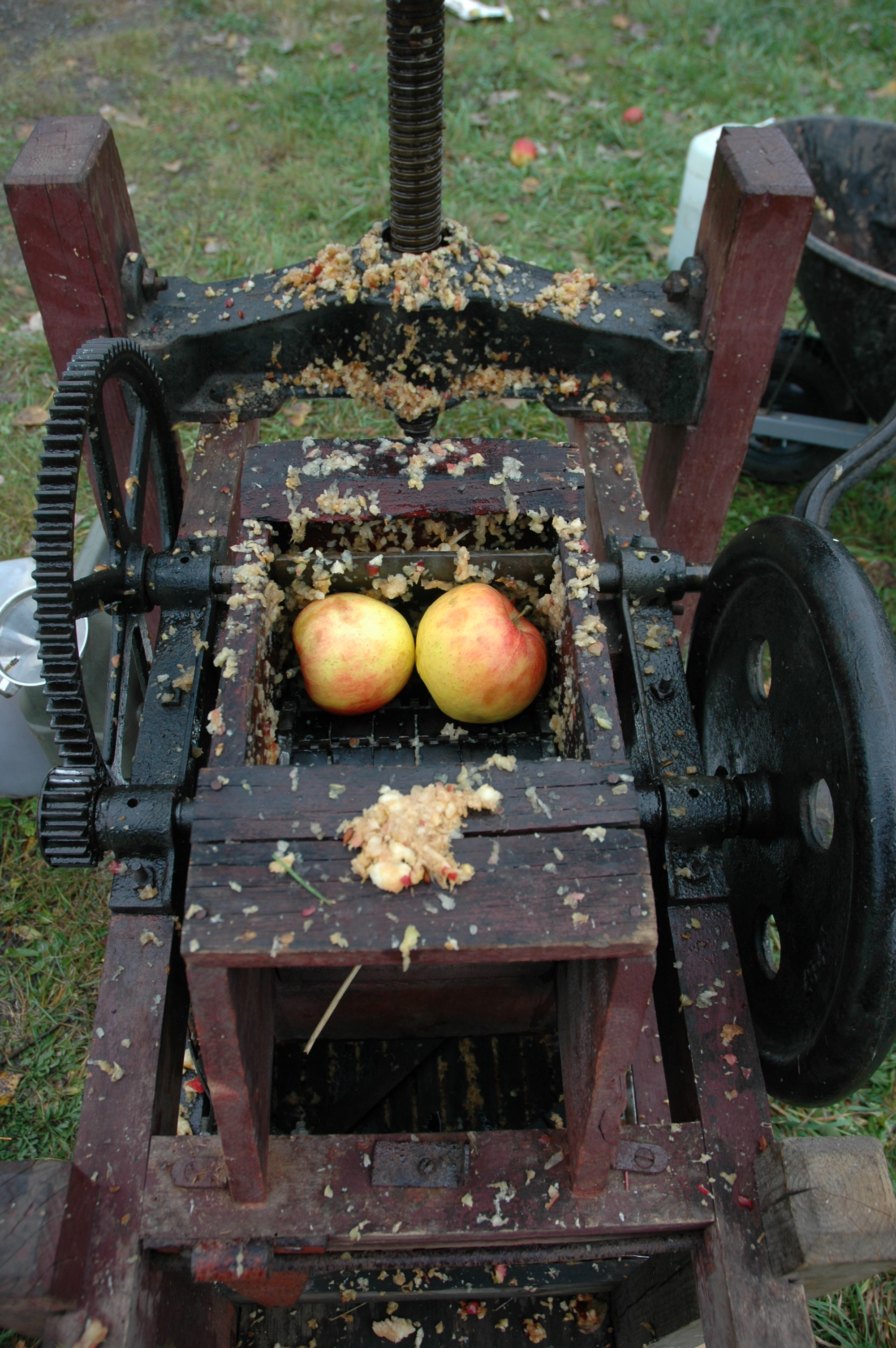 Whole apples are first ground up – made easy with gears and a fly wheel,