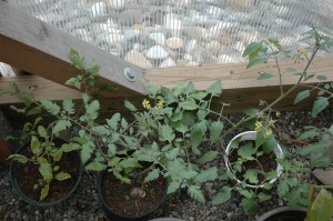 We are also experimenting with what veggies we can grow.  Before the frost this fall we took clippings from our outside tomato plants and rooted them in pots inside the greenhouse.  We dream of ripe tomatoes while the snow falls outside.   We also planted small amounts of beans and other vegetables to see how different plants perform.  Currently, we’re building large planting beds – stay tuned for a work party to get some dirt inside.  We also have planted peas for pea shoots, and are looking forward to soon testing microgreens.   Any donations of organic soil amendments, large pots, and leftover seeds would be greatly appreciated!